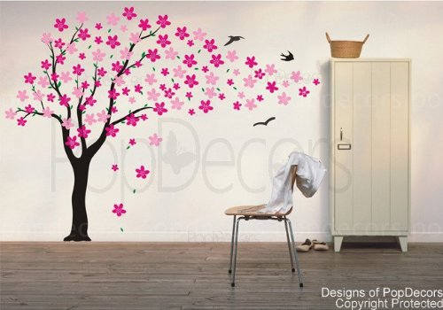 Authentic PopDecors product Only ships from and sold by PopDecors. Report Conterfeit for reward.[Size] Trees: 1 * 71inch(180cm)H (toward to the right) Default Colors: Tree Trunk: black Leaves: Leaf green Flowers: Hot pink and pink (As shown in the first image) Product shall not be used on textured wall. Mirror image, shrinking size or simple color change (1 to 1 switch) can be done with No additio